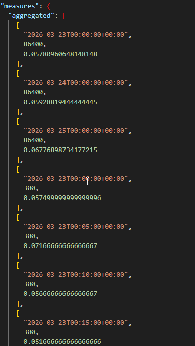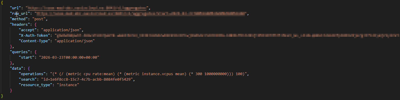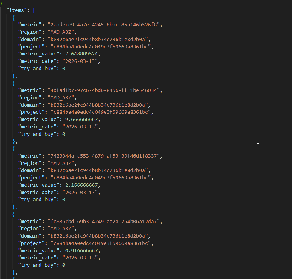 Como respuesta se obtiene las métricas solicitadas en la petición, en nuestro caso las de una CPU de una instancia en concreto: