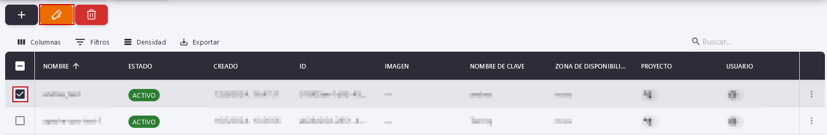 En este apartado se nos permitirá modificar diferentes aspectos de las instancias ya sea por necesidad o porque no nos convencen las características de las cuales hemos dotado a nuestras instancias a la hora de crearlas. Para editar una instancia, tendremos que seleccionarla y pulsar