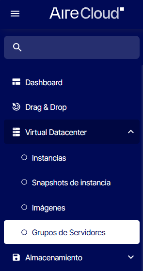 En primer lugar accederemos a la pantalla desde Virtual Datacenter-->Grupos de Servidores.