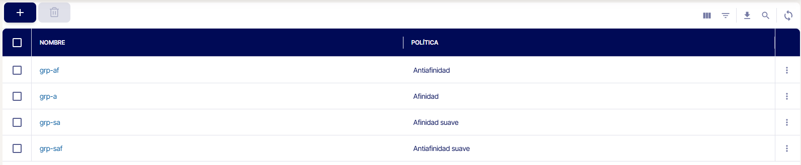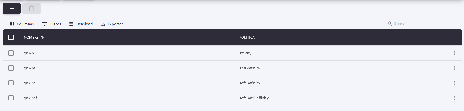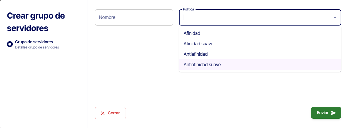 Para usar esta funcionalidad debe aplicar el filtro de afinidad o antiafinidad como una directiva a un grupo de servidores. Todas las instancias que son miembro del mismo grupo están sujetas a los mismos filtros.